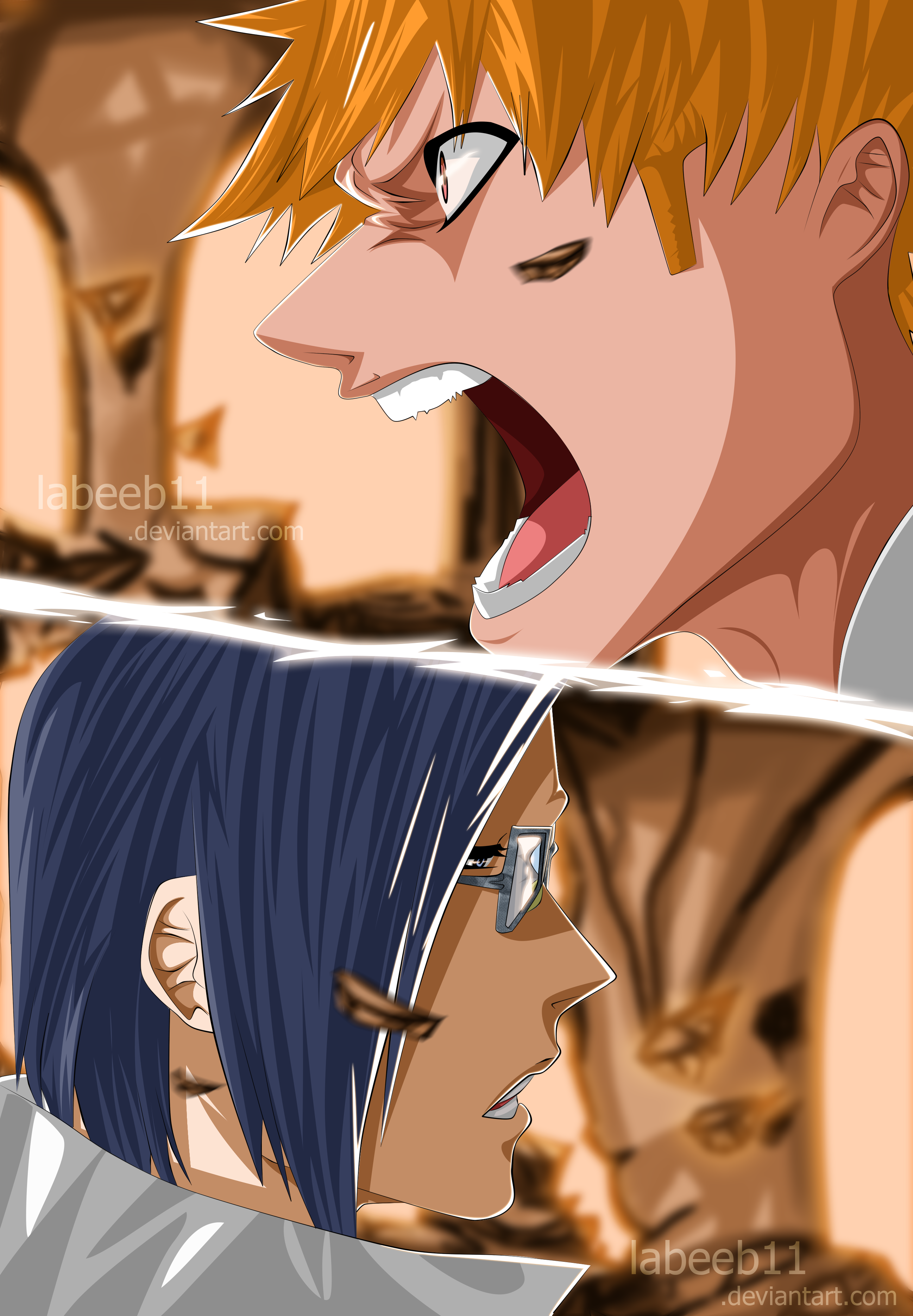 Bleach 620 Ichigo vs Ishida by labeeb11 Published on March 24, 2015 in Ishida Shoots Down Ichigo! Yhwach Absorbs Mimihagi – Bleach 620Full resolution (2594 × 3738) < Previous Next >