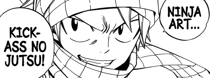 Ninja Art Kick-Ass No Jutsu Natsu Published on June 22, 2015 in Caracolle Island! Kick-Ass No Jutsu – Fairy Tail 441Full resolution (847 × 315) Next >