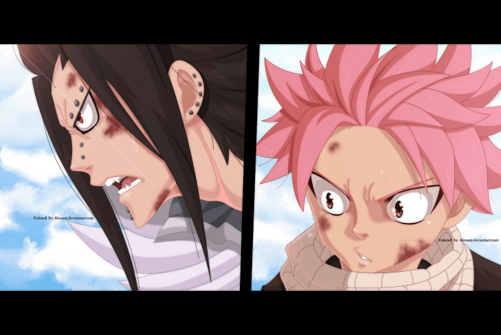 Fairy Tail 457 Natsu and Gajeel by Alexanj Published on November 1, 2015 in Erza Hurts Azir! Brandish vs Lucy and Cana – Fairy Tail 457Full resolution (1500 × 1001) < Previous Next >