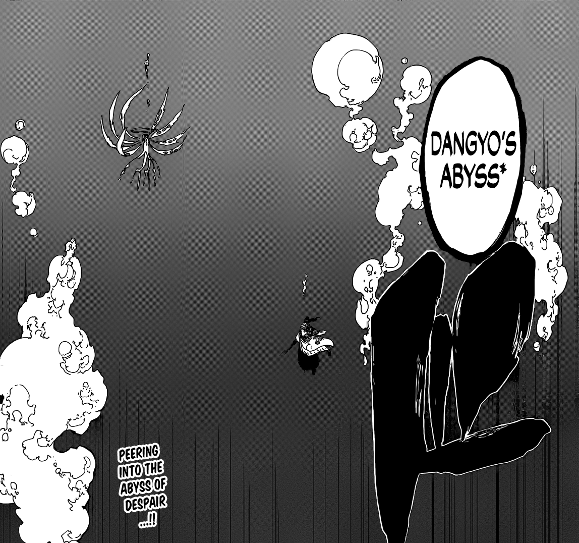Dangyo’s Abyss Shunsui vs Barro Published on October 22, 2015 in Katen Kyokotsu Karamatsu Shinjuu! Shunsui’s Darkness – Bleach 648Full resolution (1148 × 1076) Next >