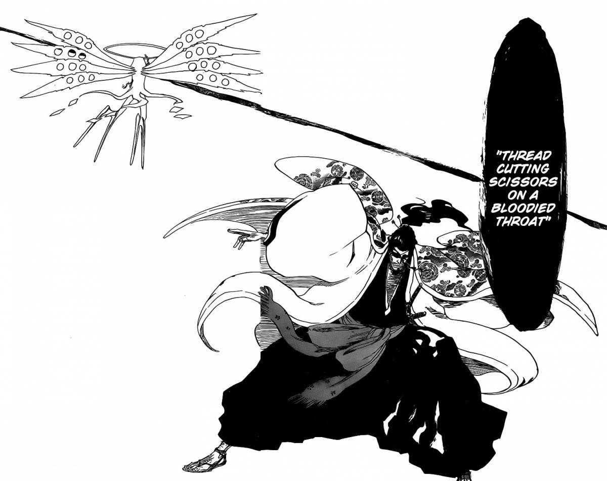 Shunsui’s Thread Cutting Scissors on a Bloodied Throat Published on October 29, 2015 in Lille Strikes Shunsui Down! Sakuranosuke and Shunsui – Bleach 649Full resolution (1200 × 952) < Previous Next >