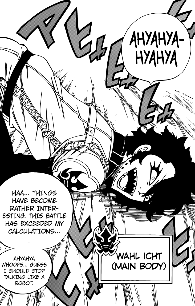 Wahl Icht’s Real Body Published on November 9, 2015 in Everybody’s Battle! Wahl Icht’s Main Body – Fairy Tail 461Full resolution (828 × 1300) < Previous Next >