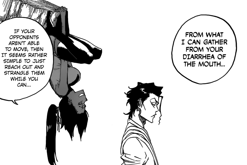 Yoruichi behind Askin Published on December 17, 2015 in God of Thunder! Heart of the Spirit King – Bleach 656Full resolution (846 × 566) < Previous Next >