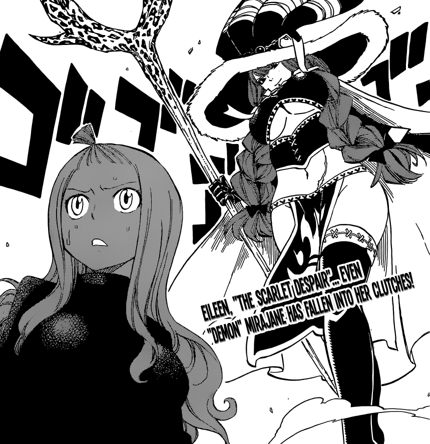 Eileen confronts Mirajane Published on July 4, 2016 in Mirajane Defeats Juliet and Heine! Eileen Appears – Fairy Tail 492Full resolution (859 × 888) Next >