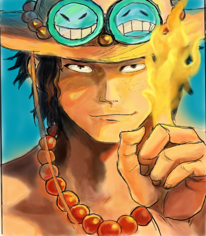 This really nice artwork of Ace was done by Momokohyhy, who recently began drawing, she has another cool image of Sanji, if you like this, go check that out too. Otherwise be sure to share this image of Ace with other fans of the series.
